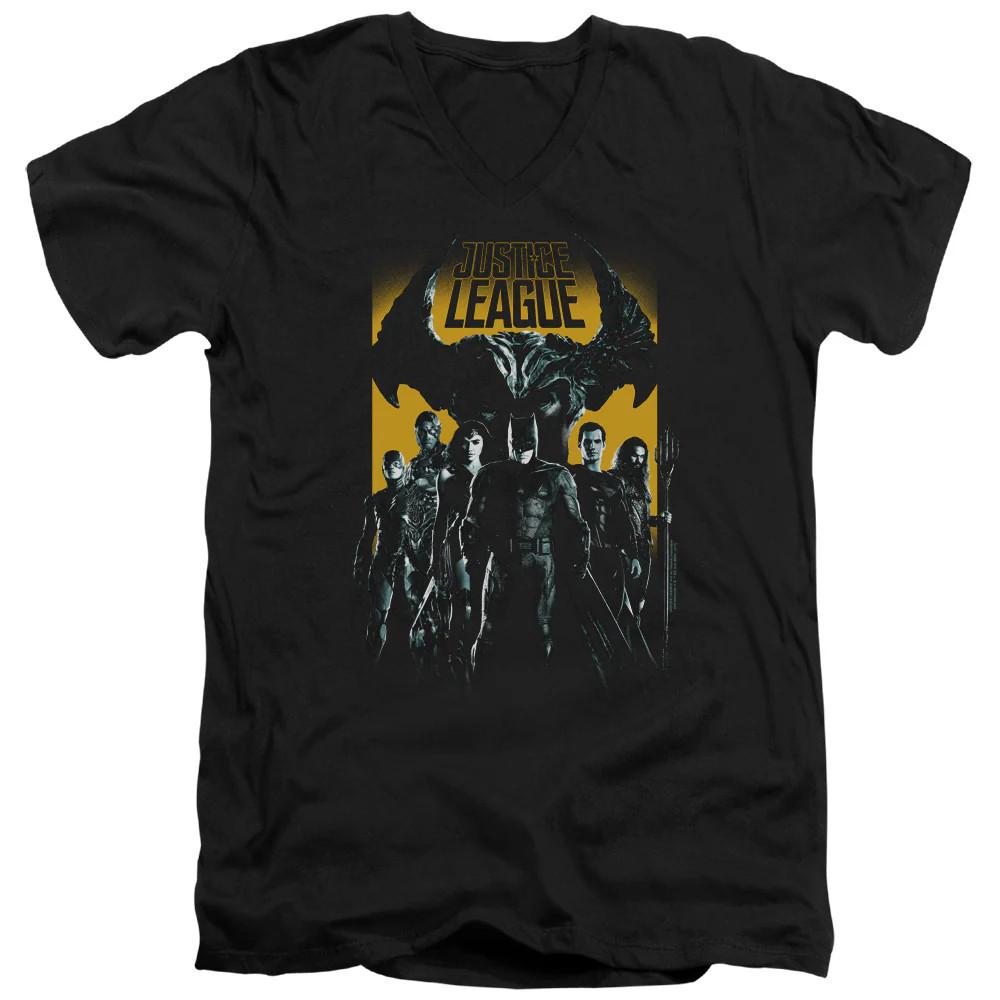 Justice League Movie Stand Up to Evil Mens Slim Fit V-Neck T Shirt Black