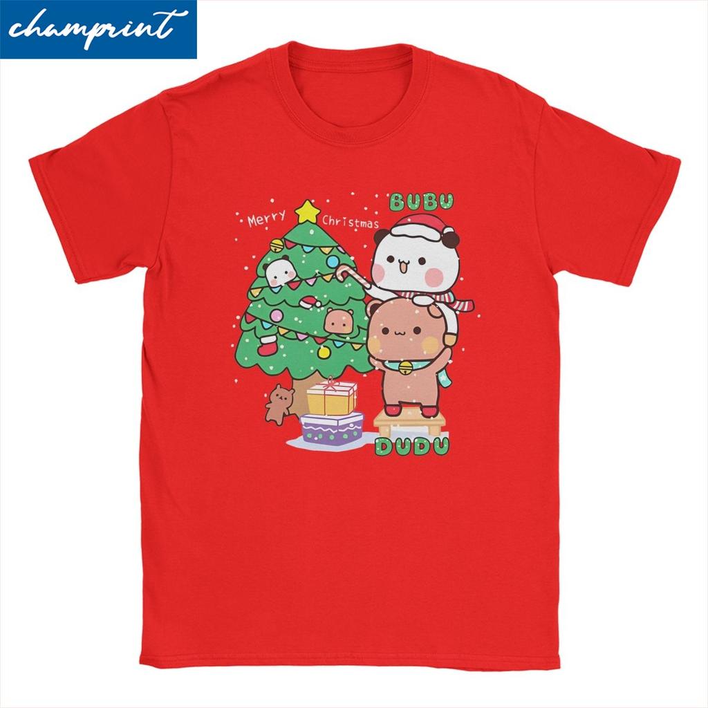 Bubu Dudu Рождественская Панда Пара Мужская Женская Футболка Милые Рождественские Хипстерские Футболки Футболка с Круглым Вырезом Чистый Хлопок Подарок на День Рождения Одежда