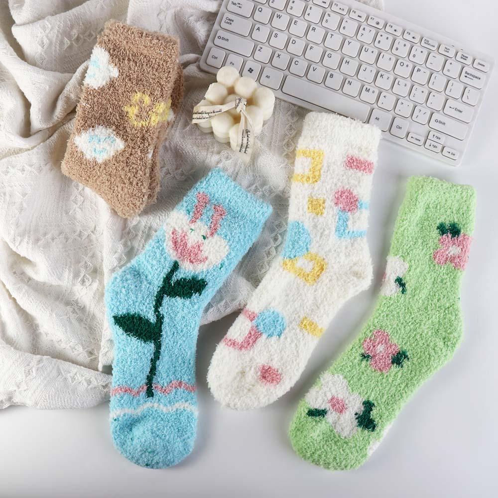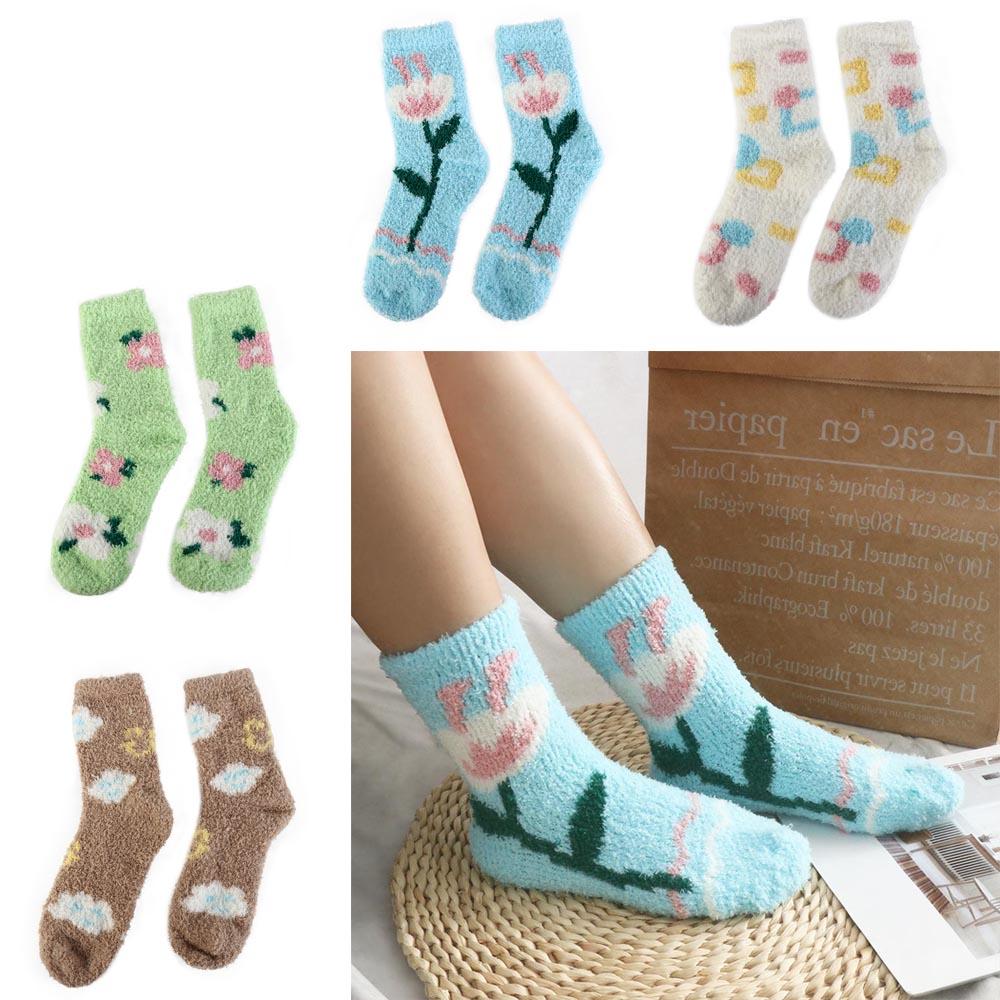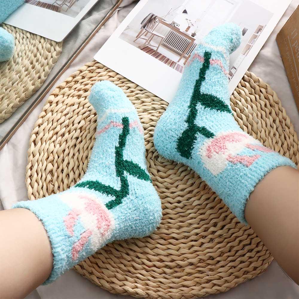 Plush Coral Velvet Socks Female Hosiery Sleeping Socks Casual Flower Pattern Socks Women