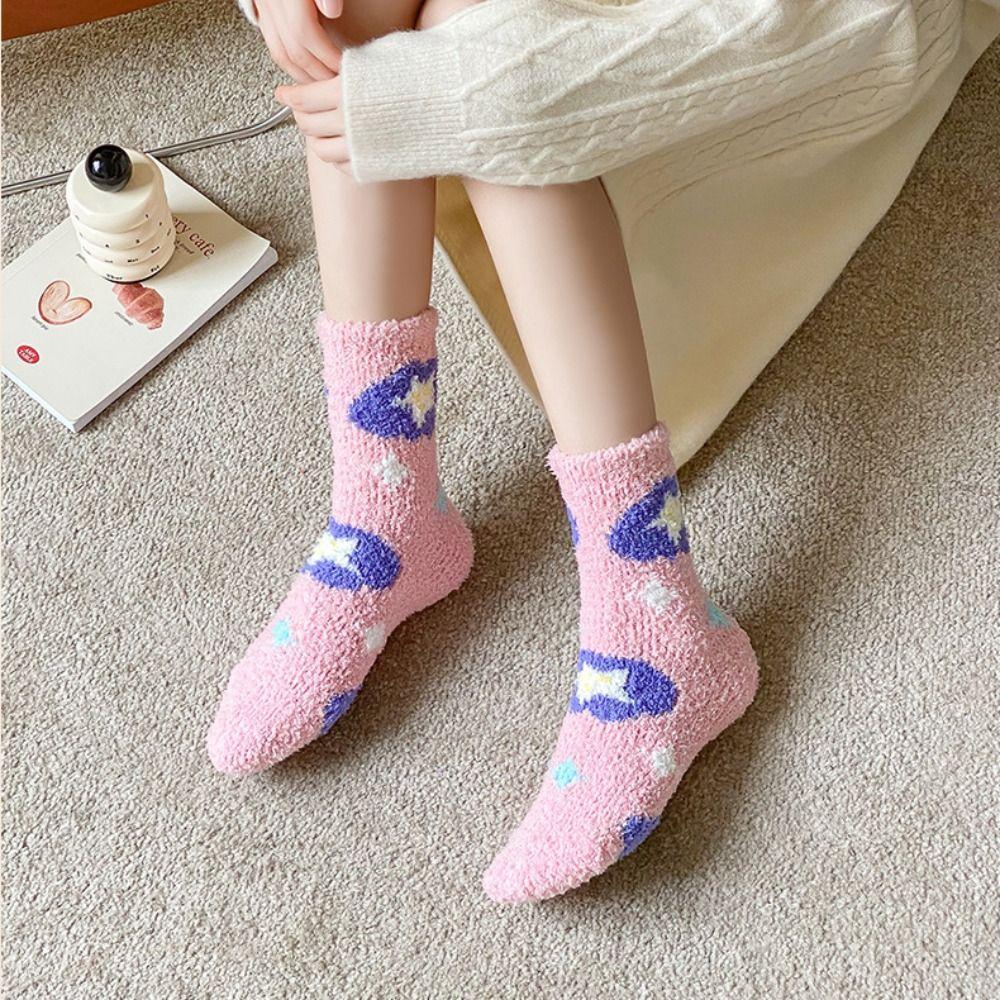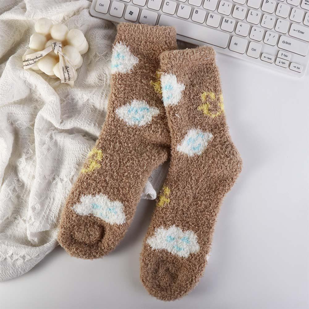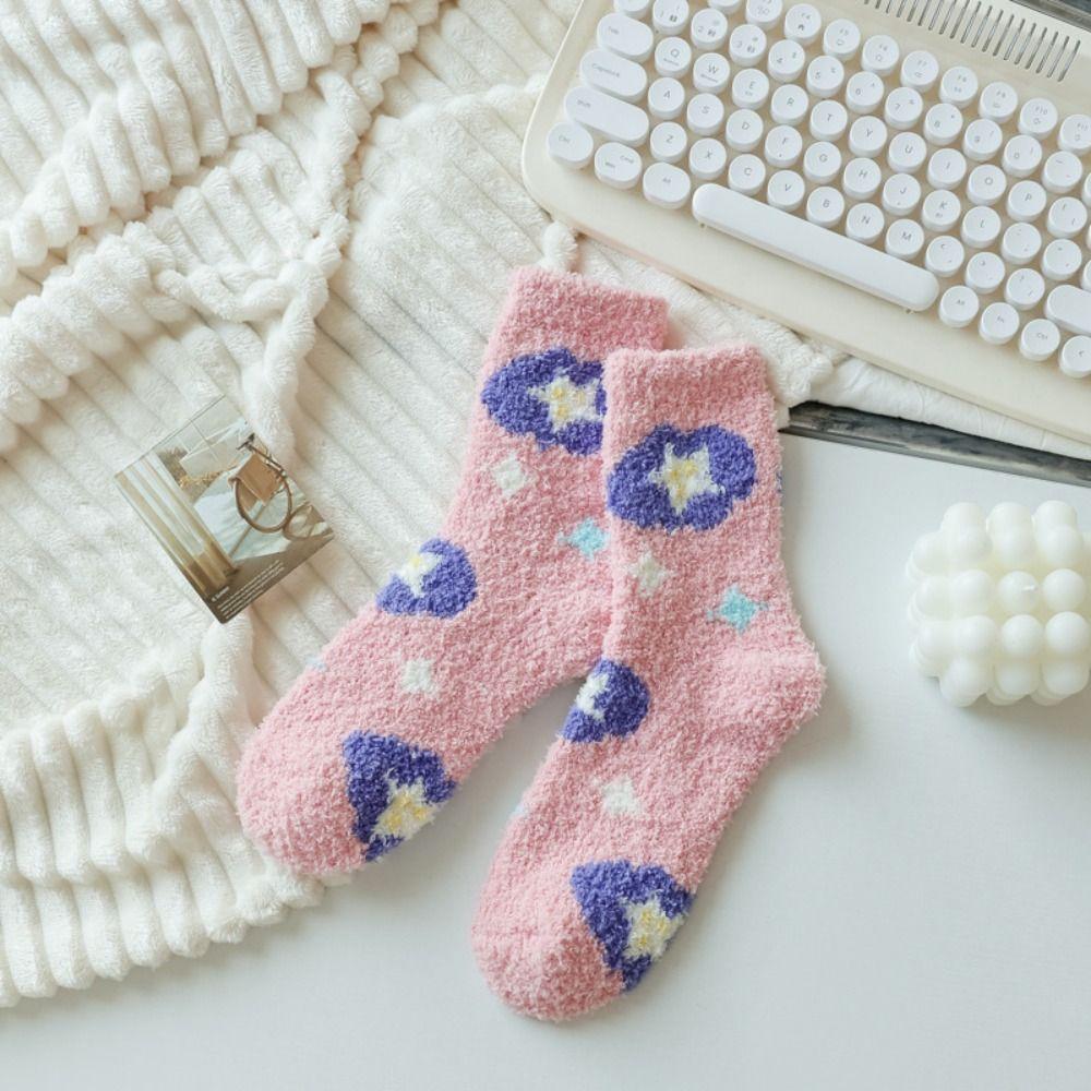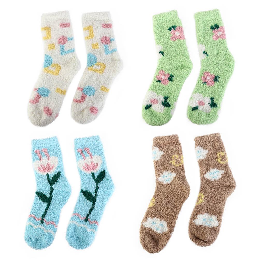 Plush Coral Velvet Socks Female Hosiery Sleeping Socks Casual Flower Pattern Socks Women