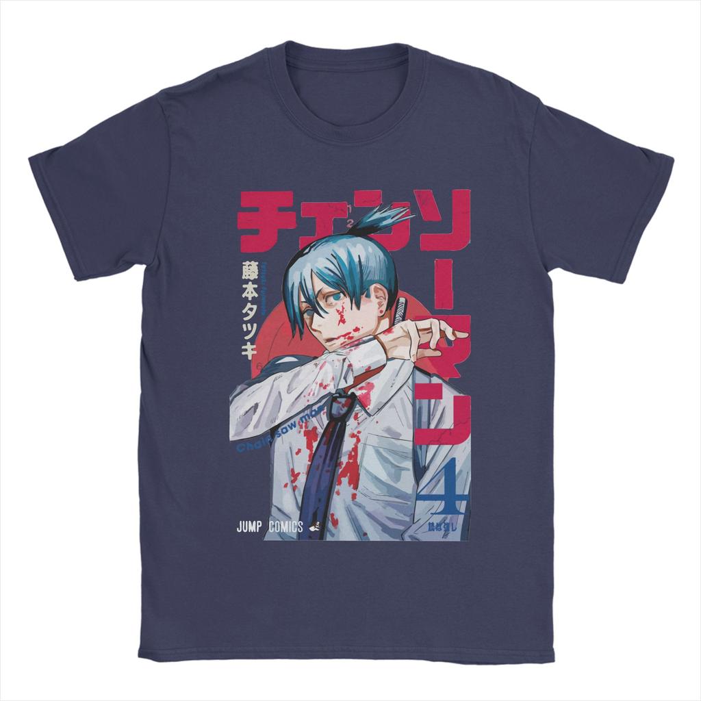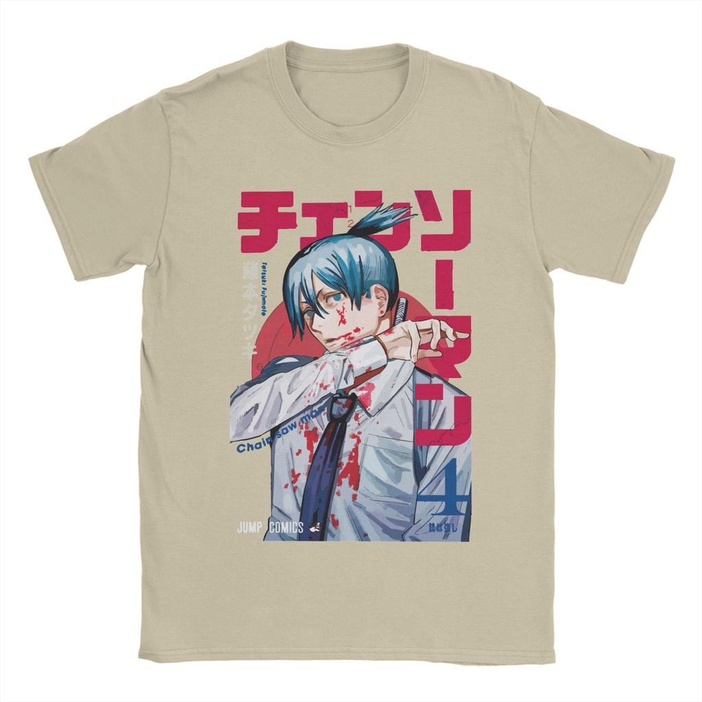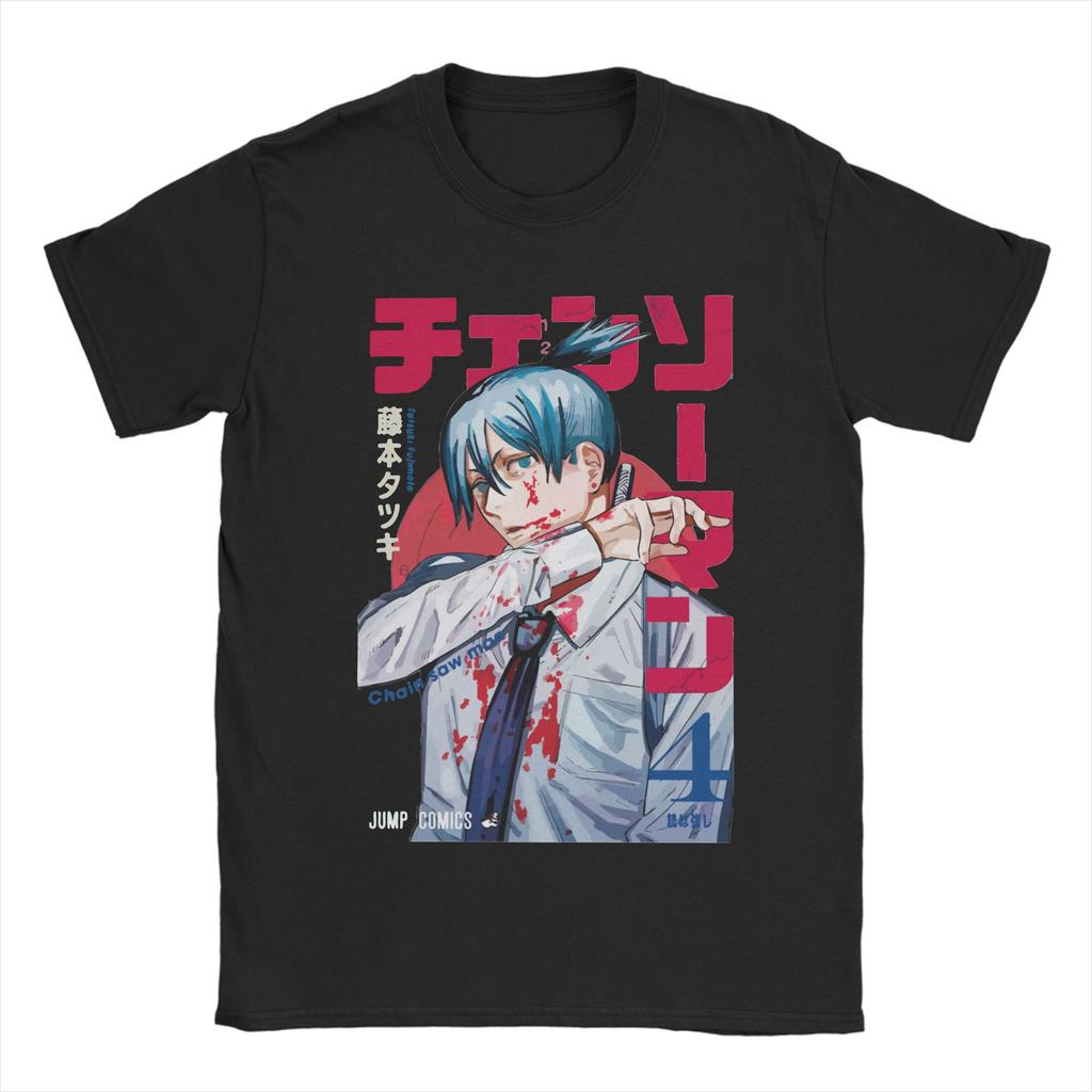 Футболки Chainsaw Man Hayakawa Aki Мужские Аниме Манга Винтажные Футболки из Чистого Хлопка Футболки с Круглым Вырезом и Коротким Рукавом Новое Поступление Одежда