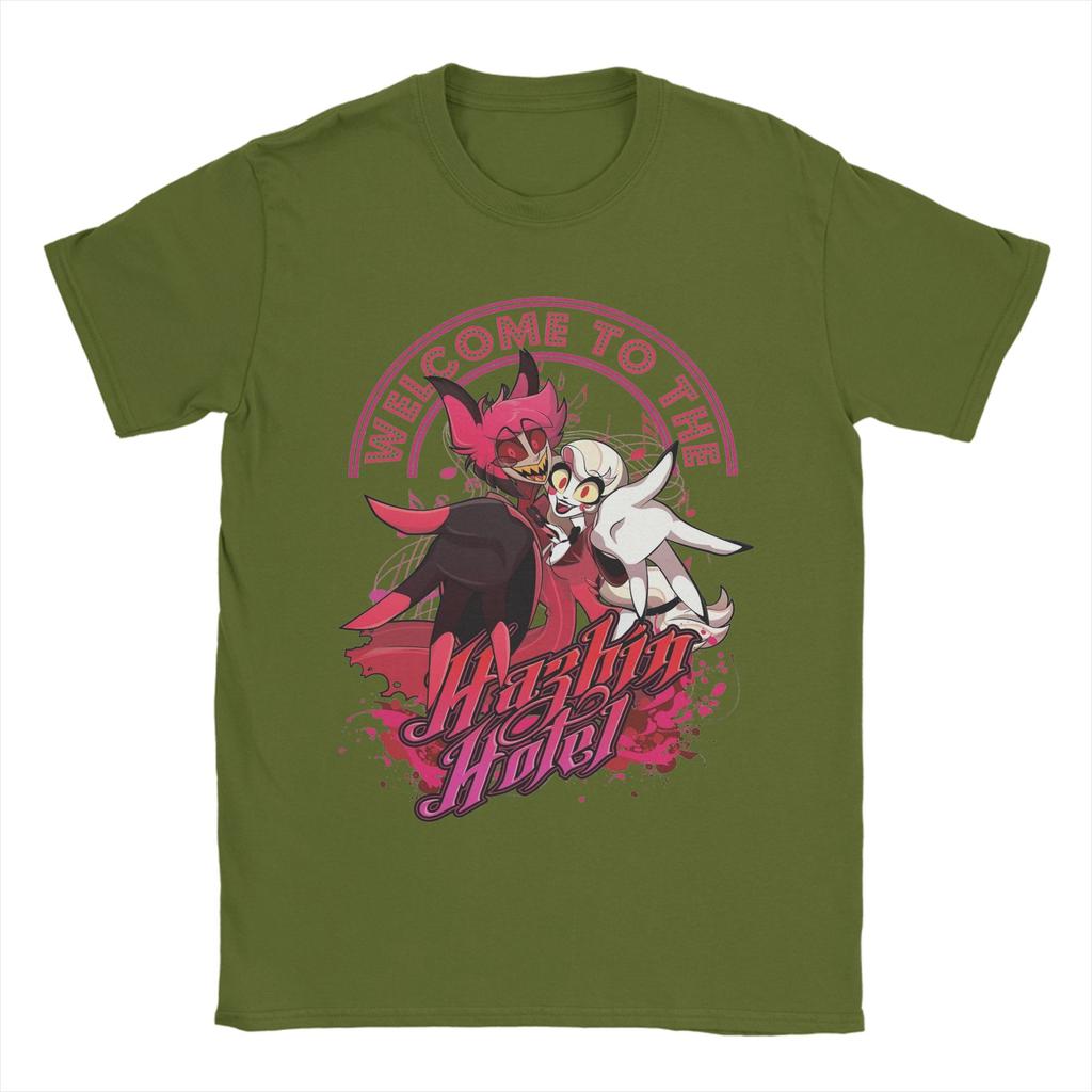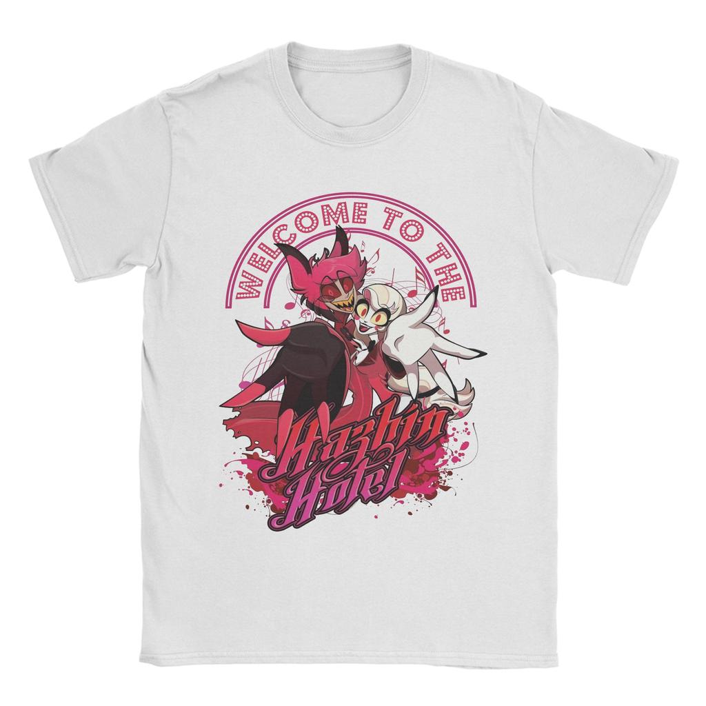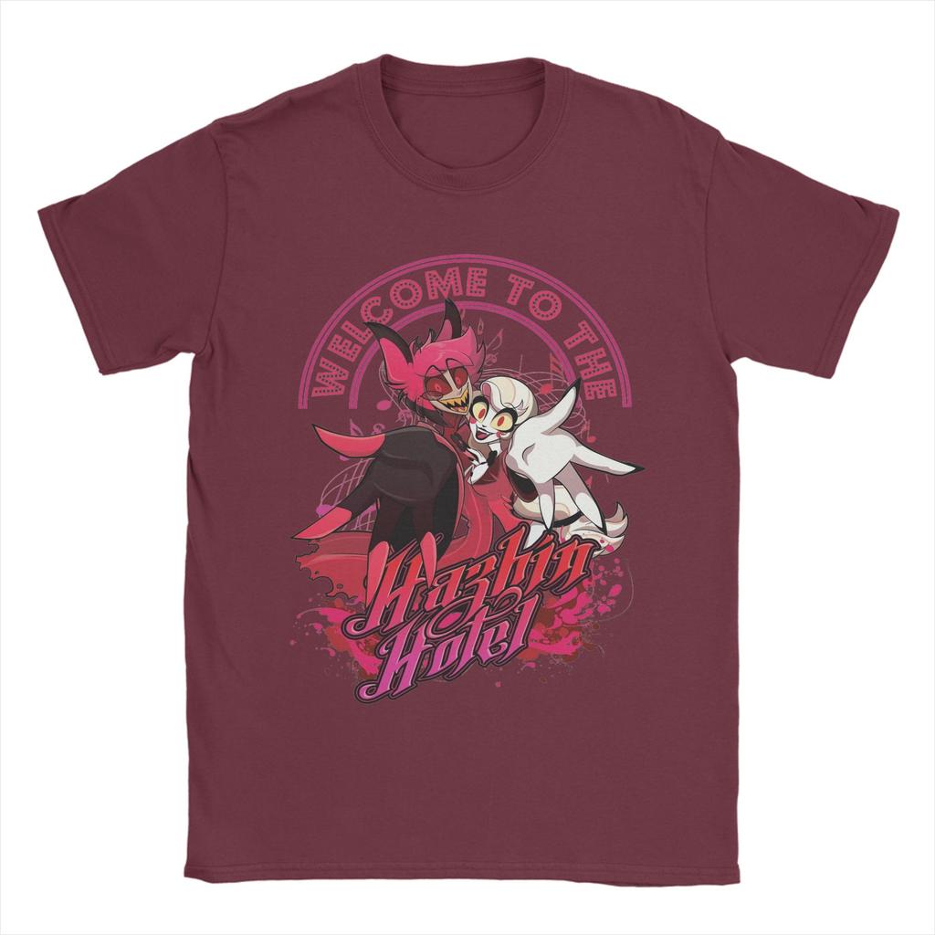 Мужчины Добро пожаловать в футболки Hazbins Hotels Топы из чистого хлопка Винтажные футболки с коротким рукавом и круглым вырезом Футболки с принтом