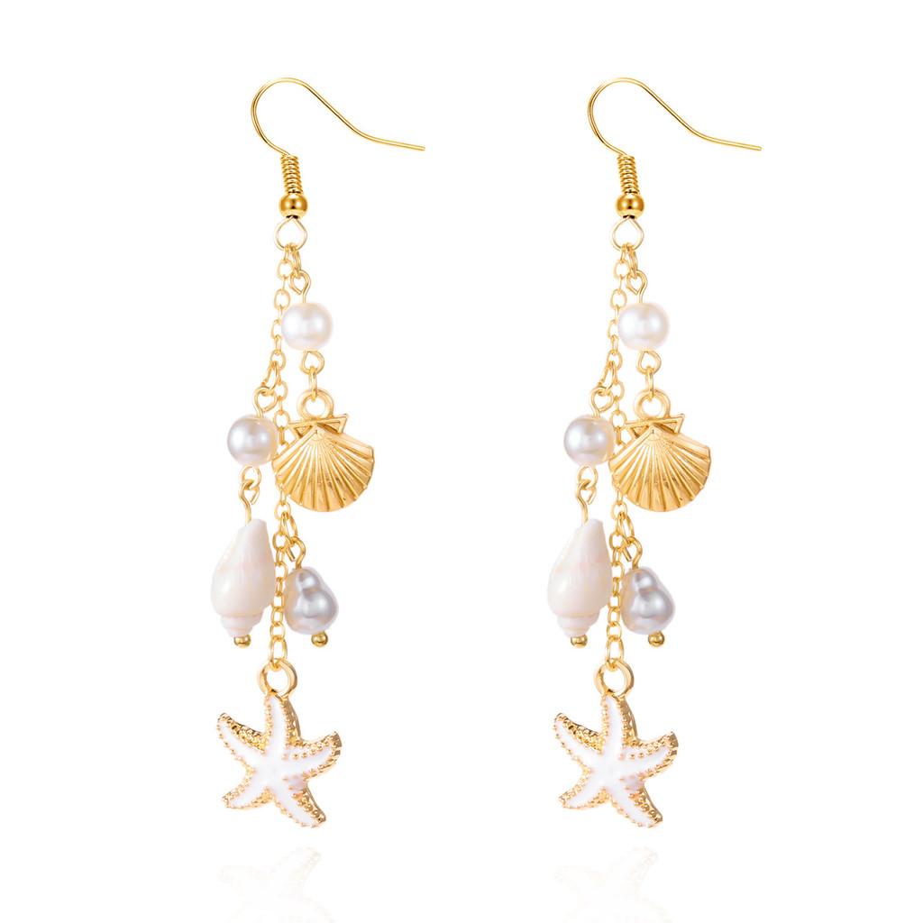 Геометрические Серьги из Перламутровой Раковины с Гальваническим Покрытием для Летней Пляжной Моды