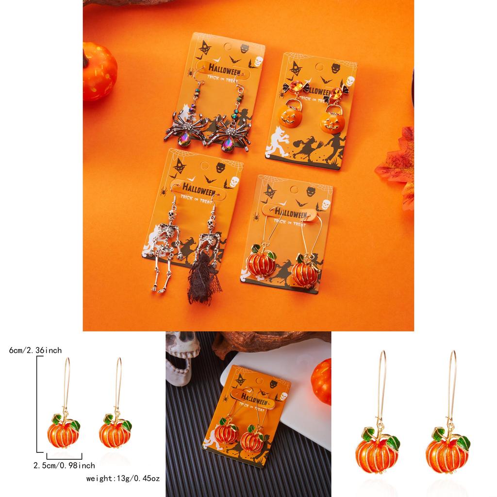 Серьги из сплава в виде скелета тыквы на Хэллоуин с гальваническим покрытием для косплея и украшения для вечеринки