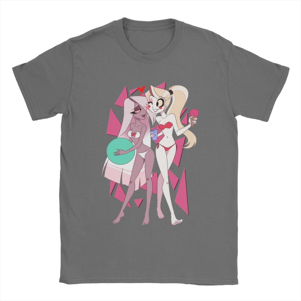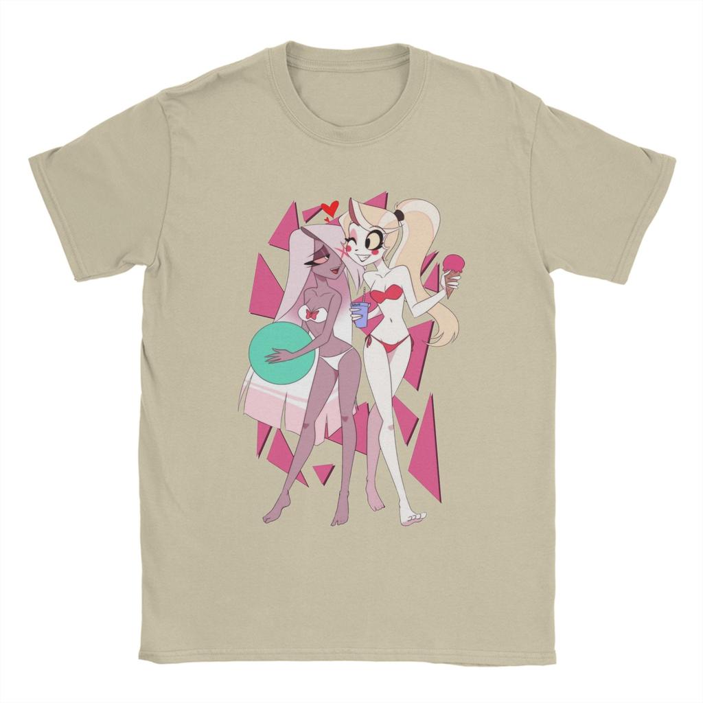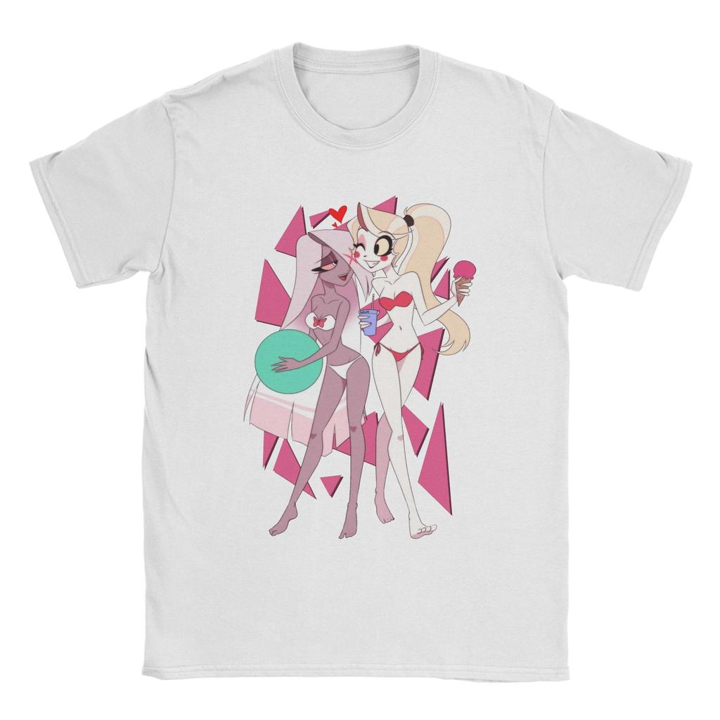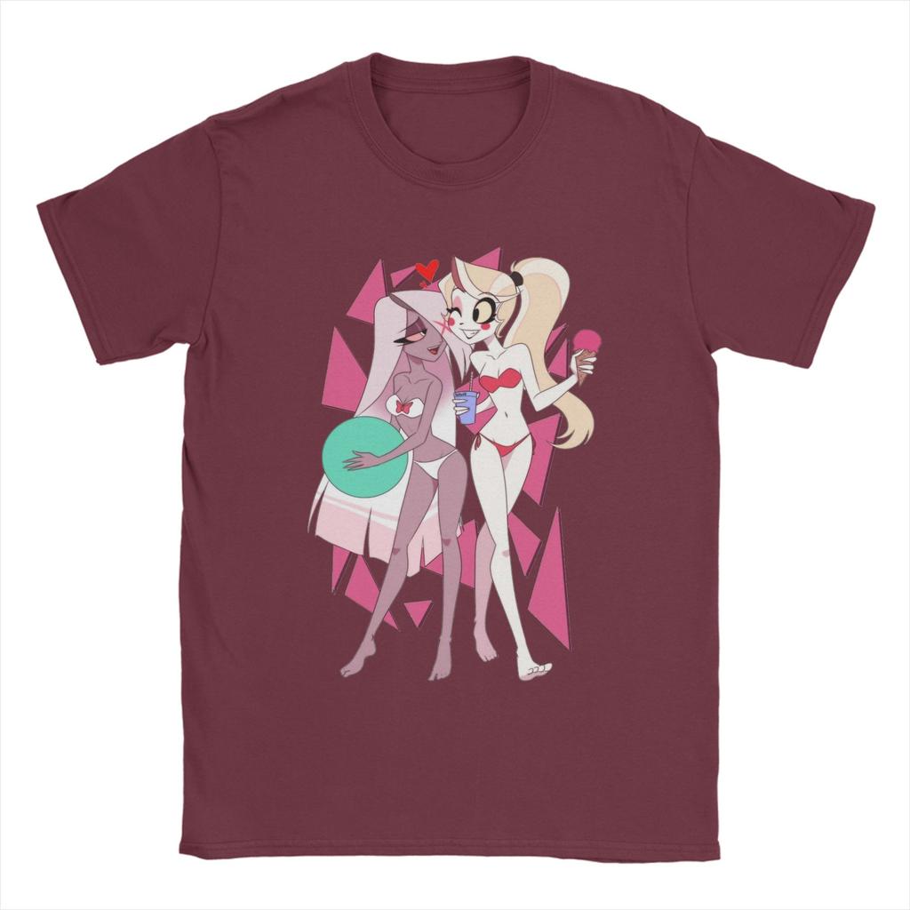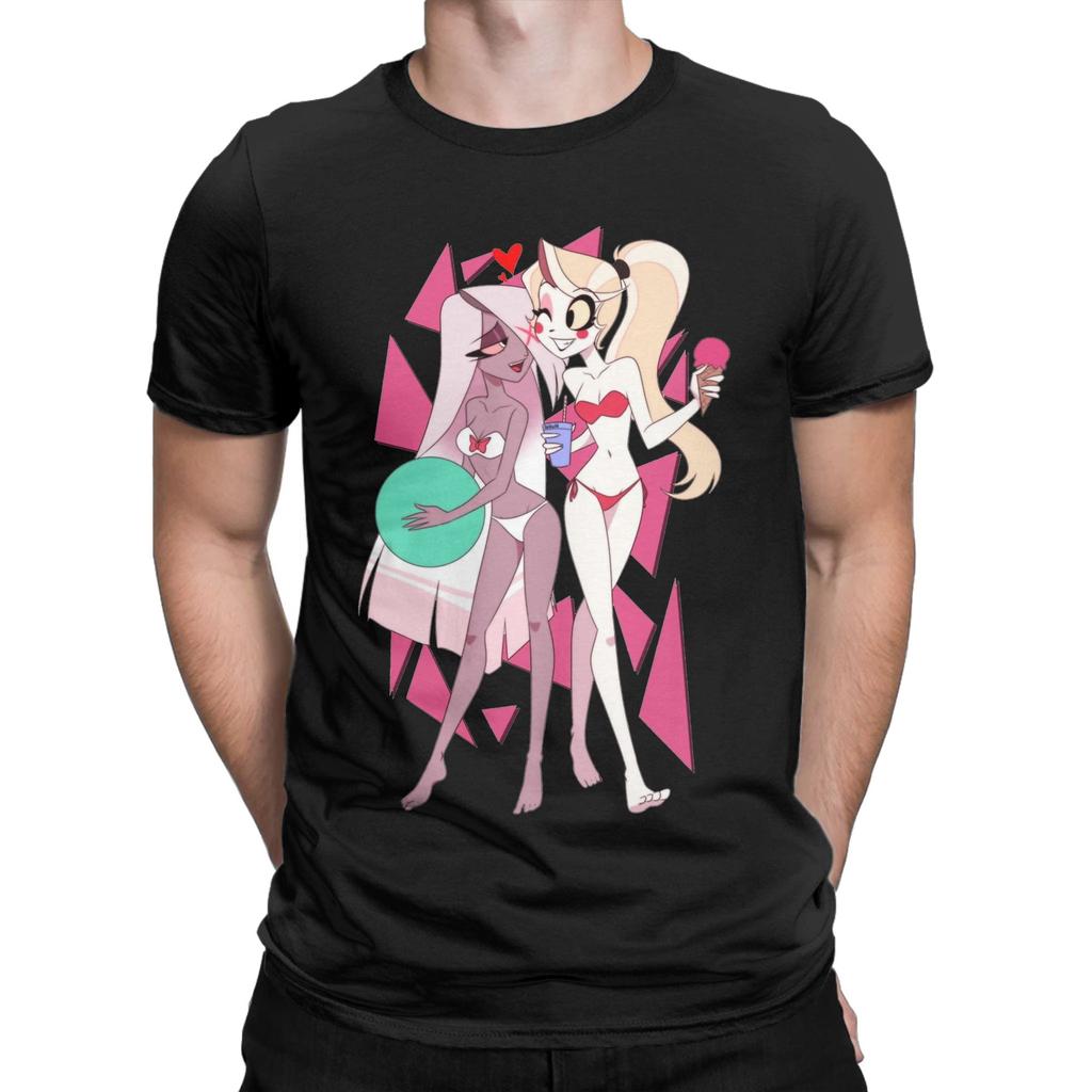Мужские футболки Charlie and Vaggie Bikini Hazbins Hotels Винтажные футболки из чистого хлопка с круглым вырезом и коротким рукавом Одежда