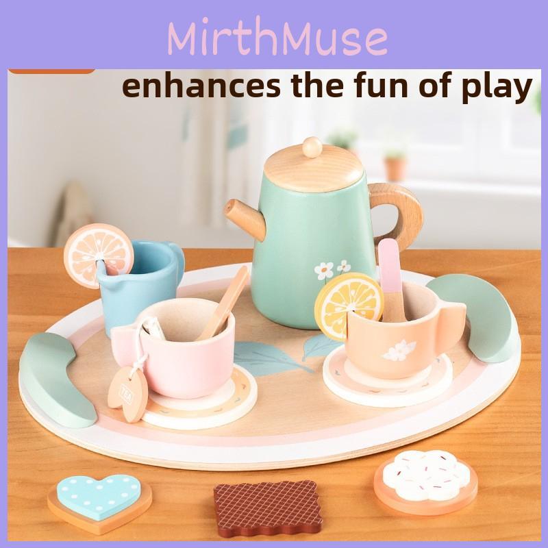 Деревянный набор для послеобеденного чая, чашки для печенья, сервировочная посуда, детские игрушки для творческой ролевой игры