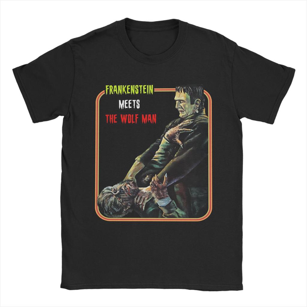 Vintage Frankenstein Meets the Wolfman T Shirt Unisex Cotton Short Sleeve O-neck Summer Clothing — купить товар онлайн с бесплатной доставкой по всему миру!