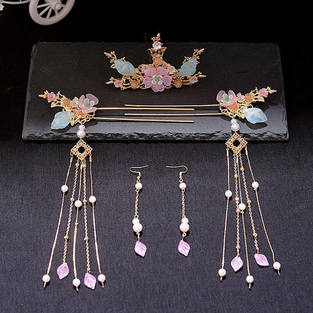 Light Colors Bridal Headwear Plastic Earrings Hairpin Set Wedding Ceremony