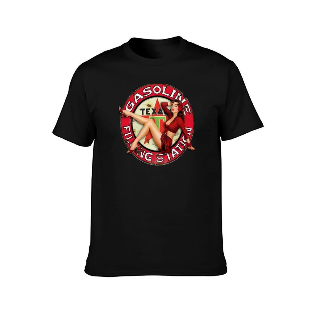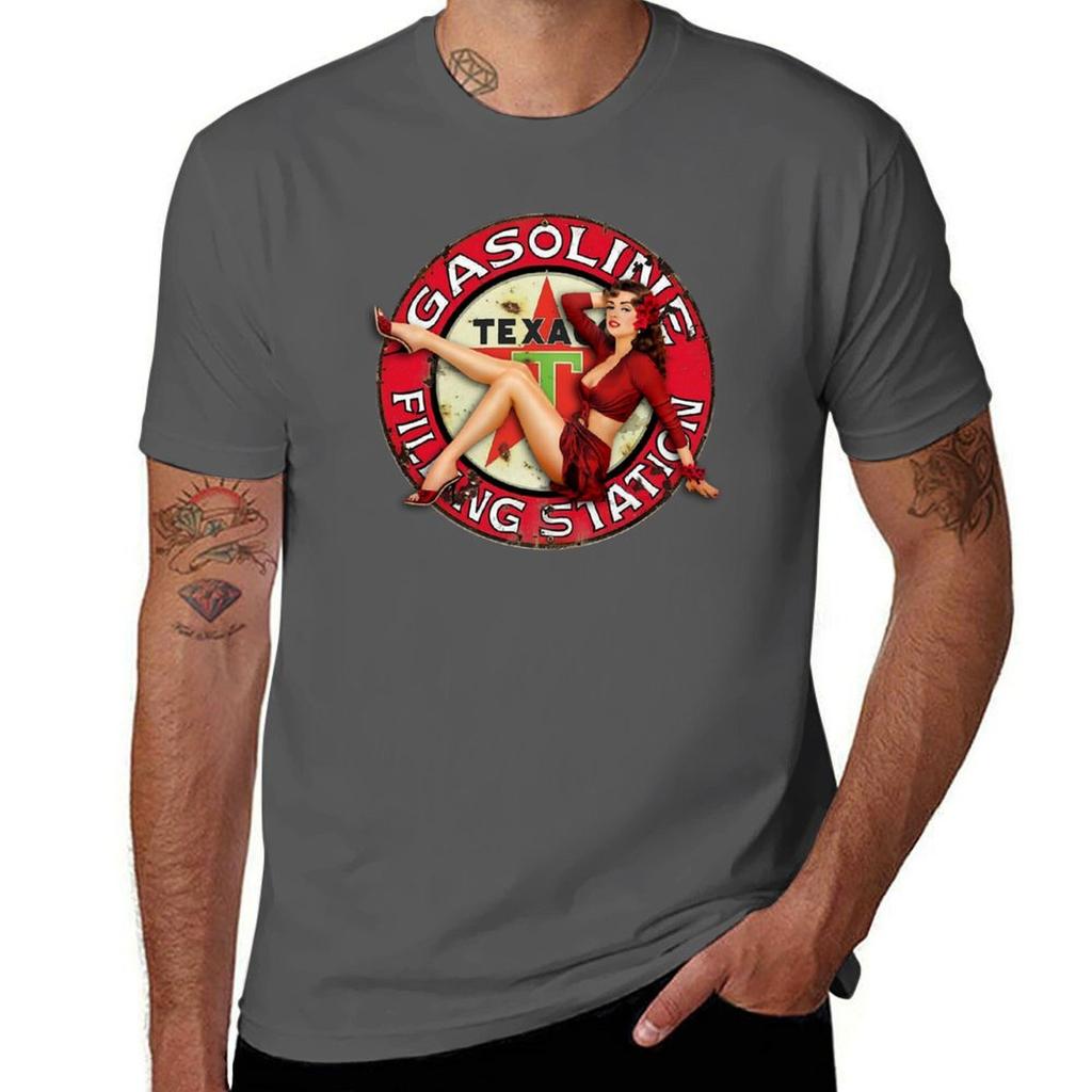 Винтажный знак заправочной станции Texaco - Девушка пин-ап Премиум Совок Футболка оверсайз корейская модная футболка для мужчин