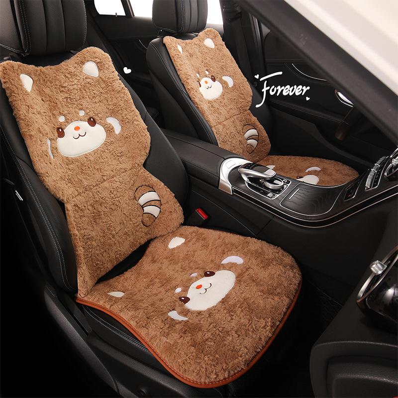 Cartoon Raccoon Winter Plush Car Seat Cushion