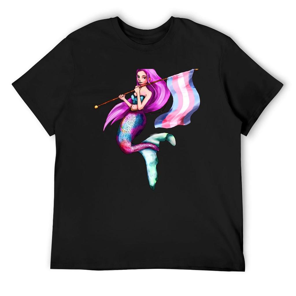 Trans flag mermaid T-Shirt anime clothes heavyweights customs design your own blanks mens graphic t-shirts anime