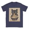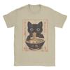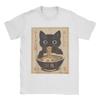 Мужские футболки с раменом и японским черным котом, кавайные футболки из чистого хлопка в винтажном стиле, с круглым вырезом и коротким рукавом, идея для подарка, топы
