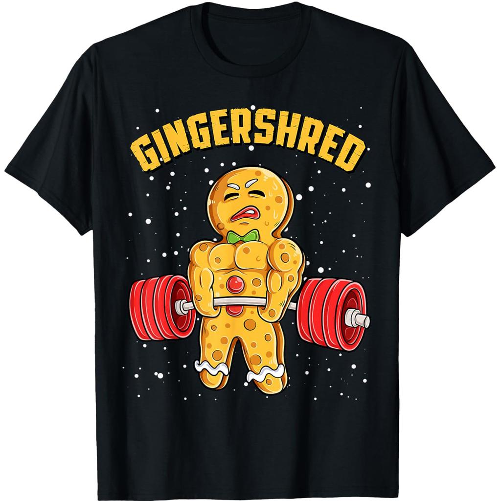 Gingershred Смешной Пряничный Человечек Тренажерный Зал Бодибилдинг Рождественские Футболки Мужские Юмор Уличная Одежда Короткий Рукав Унисекс Свободная Одежда