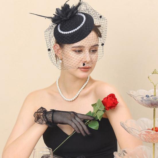 Характеристики: Декор из искусственного жемчуга, Дизайн с перьями, Ретро вуаль