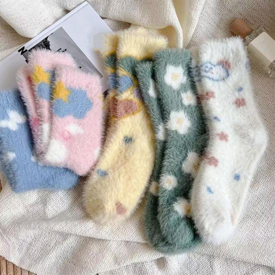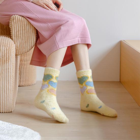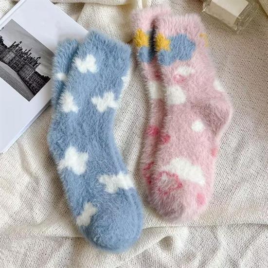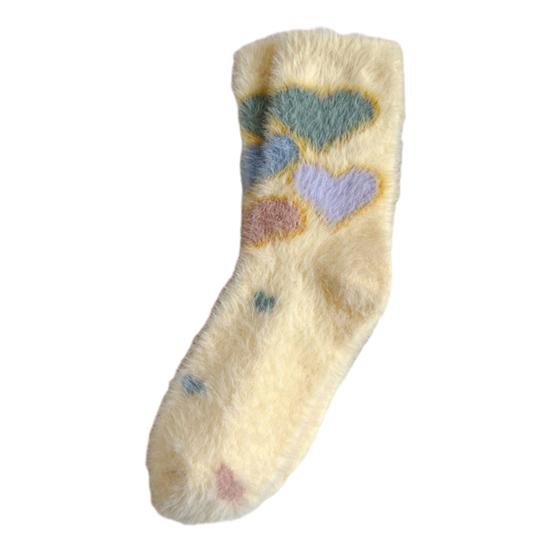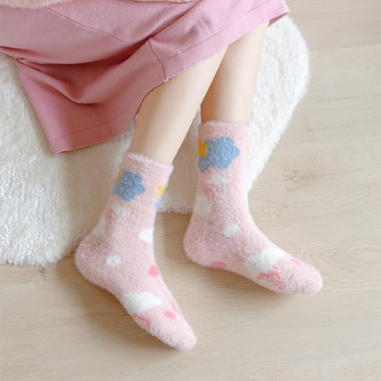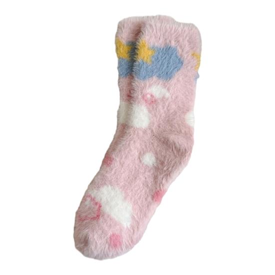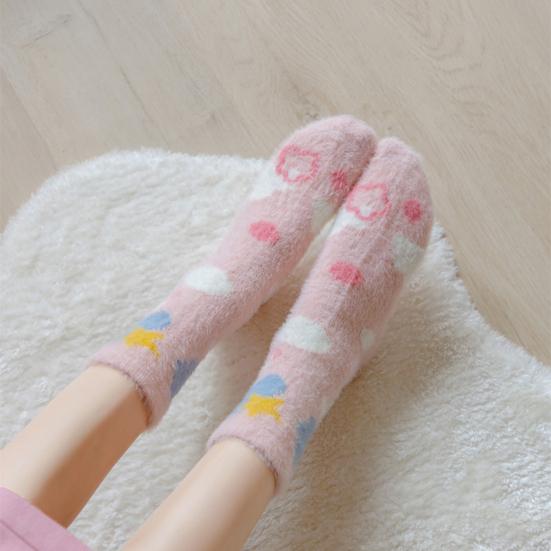 Представляем наши уютные теплые носки, созданные для того, чтобы ваши ноги оставались в тепле и выглядели стильно весь день.. Изготовленные из утолщенного плюшевого материала, эти носки обеспечивают удобную посадку без давления, гарантируя тепло без какой-либо стесненности.. Милый дизайн украшен разноцветными сердечками, бантиками и белыми облаками, добавляющими игривый штрих вашему наряду.. Изготовленные из приятного к коже искусственного норкового бархата, эти носки обеспечивают превосходное сохранение тепла для осенне-зимнего сезона.