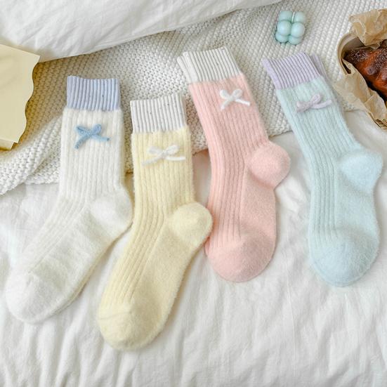 Yousheng Женские зимние носки до середины икры в рубчик, теплые эластичные носки с бантом, дышащие утолщенные повседневные носки для дома, сна, ежедневных дел