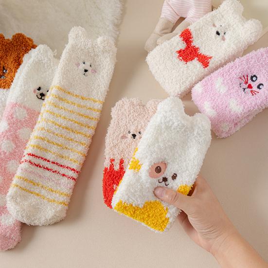 Yousheng Fluffy Winter Crew Socks Cute Animal Embroidery Warm Socks Thick Fuzzy Plush Bear Cat Thermal Socks for Women Sleep Home Lounging — купить товар онлайн с бесплатной доставкой по всему миру!