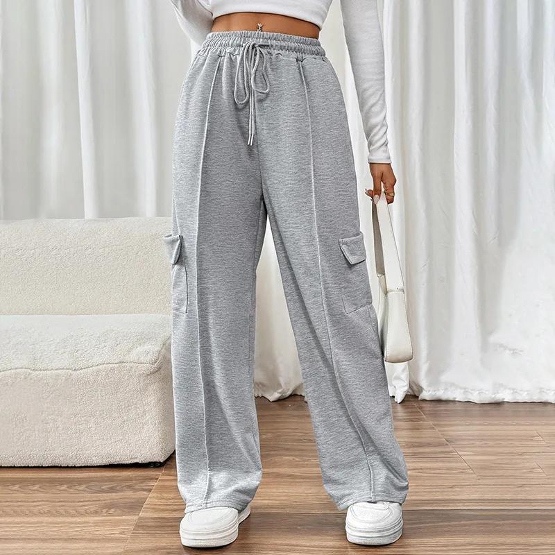 Новые Повседневные Эластичные Брюки Прямого Кроя с Высокой Посадкой и Карманами Удобные Женские Однотонные
