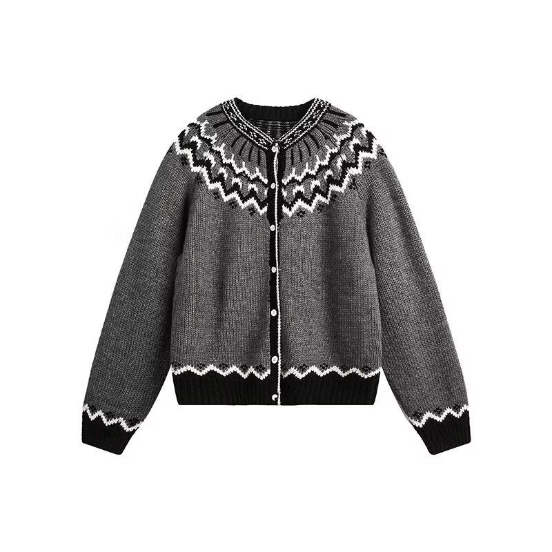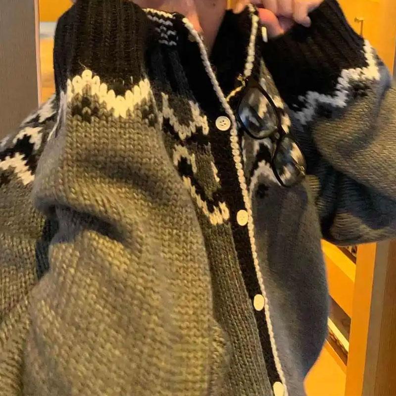 Винтажный вязаный кардиган с вставками, мужская одежда, круглый вырез, осень-зима, однобортный, с узором «Фэр-айл», свитера с длинным рукавом