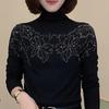 Осень Зима Новый Тяжелая Промышленность Горячий Бриллиант Полувысокая Горловина Тонкий Вельвет Свободный Лонгслив Базовая Футболка Топ
