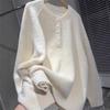 Plush button-up Henry collar knitted top women's autumn and winter temperament soft waxy shoulder sleeves loose sweater bottoming shirt