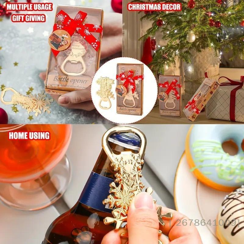 Металлический открыватель для бутылок на рождественскую тематику, дизайн «Рождественская елка, снеговик, снежинка», практичный барный инструмент, украшение для праздничной вечеринки, подарок