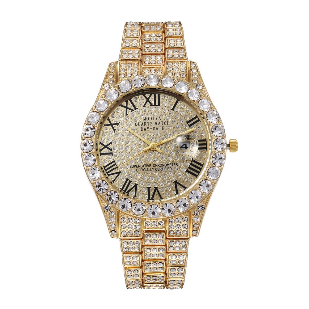 Fashion Luxury Men's Gold Steel Strap Roman Scale Rhinestone Calendar Quartz Watch Leisure Male Wristwatch Relogio Masculino