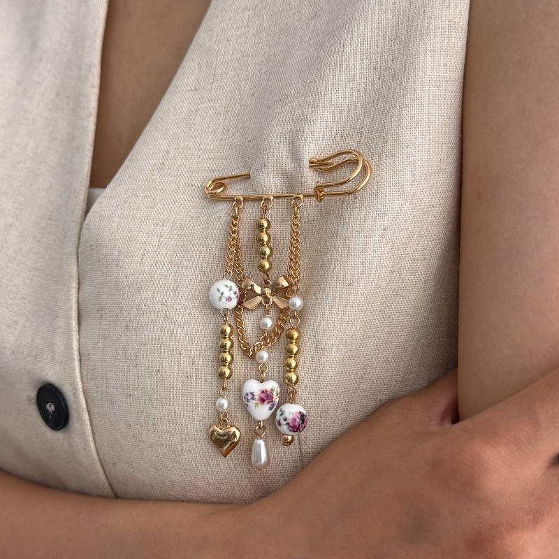 Бант Любовь Сердце Подвеска Кисточка Металлическая Цепочка Жемчужная Брошь Зажим для Воротника Свитера Брошь Ювелирное Украшение