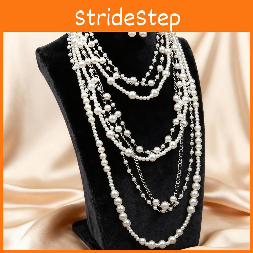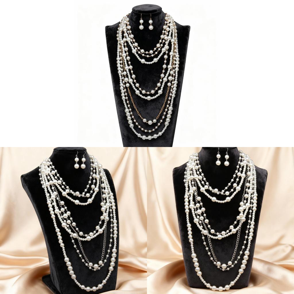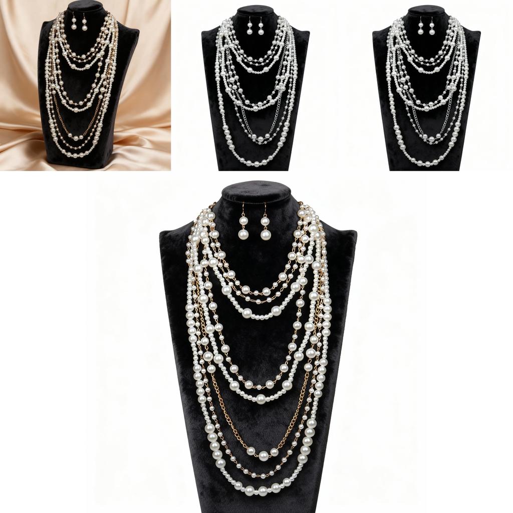 Этот женский набор из жемчужного ожерелья и серег имеет многослойный геометрический дизайн, изготовлен из имитации жемчуга и покрыт золотом или серебром, предлагая стильный аксессуар для офиса и повседневных случаев.. Сделано для повседневной носки, дополняет профессиональные и модные наряды. Протирайте мягкой тканью для поддержания блеска.