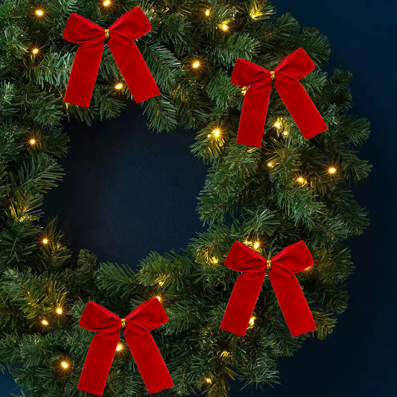 Рождественский бант Красный бархатный бант Подвеска на елку Подвеска на елку Свадебный Новогодний декор для вечеринки DIY Упаковка подарочной коробки
