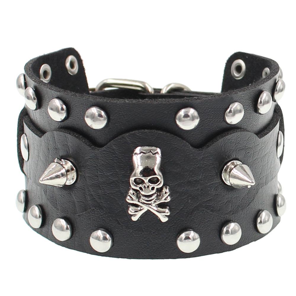Новый Харадзюку Круглый Готический Скелет Звезда Череп Панк Клепаный Браслет Ретро Парный Браслет из ПУ кожи Ювелирный подарок