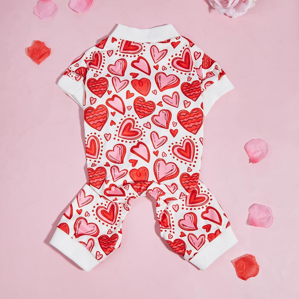 Пижама для собак со сладкими розовыми сердцами с волнистыми линиями, одежда для щенков для маленьких собак, для девочек и мальчиков, повседневная пижама для собак, комбинезон для собак