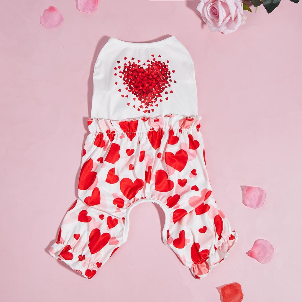 Dog Pajamas Pjs Pup Jumpsuit Lovely Hearts Printed Dog Clothes for Small Dogs Girl Boy ,Dogs Pink Puppy Clothes Doggie Onesies C