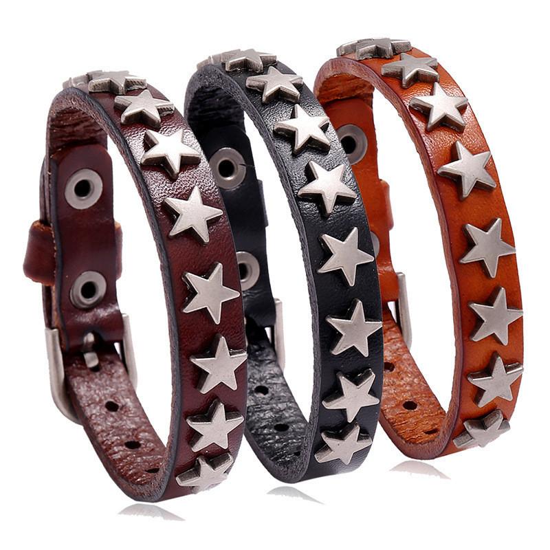 2025 Новый Звездный Панк Браслет из Искусственной Кожи для Мужчин Женщин Шипованный Браслет Готическая Бижутерия Косплей Эмо Одежда Аксессуары — купить товар онлайн с бесплатной доставкой по всему миру!