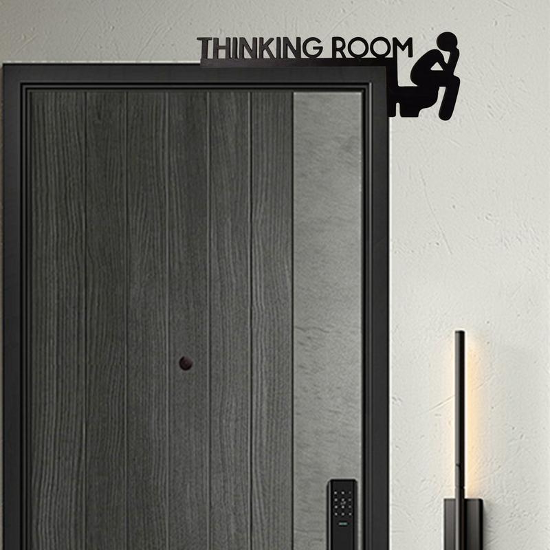 "Thinking Room" Toilet Door Sign Modern Metal Bathroom Wall Art Funny Door Frame Sculpture Decorative Window Door Frame Pendant