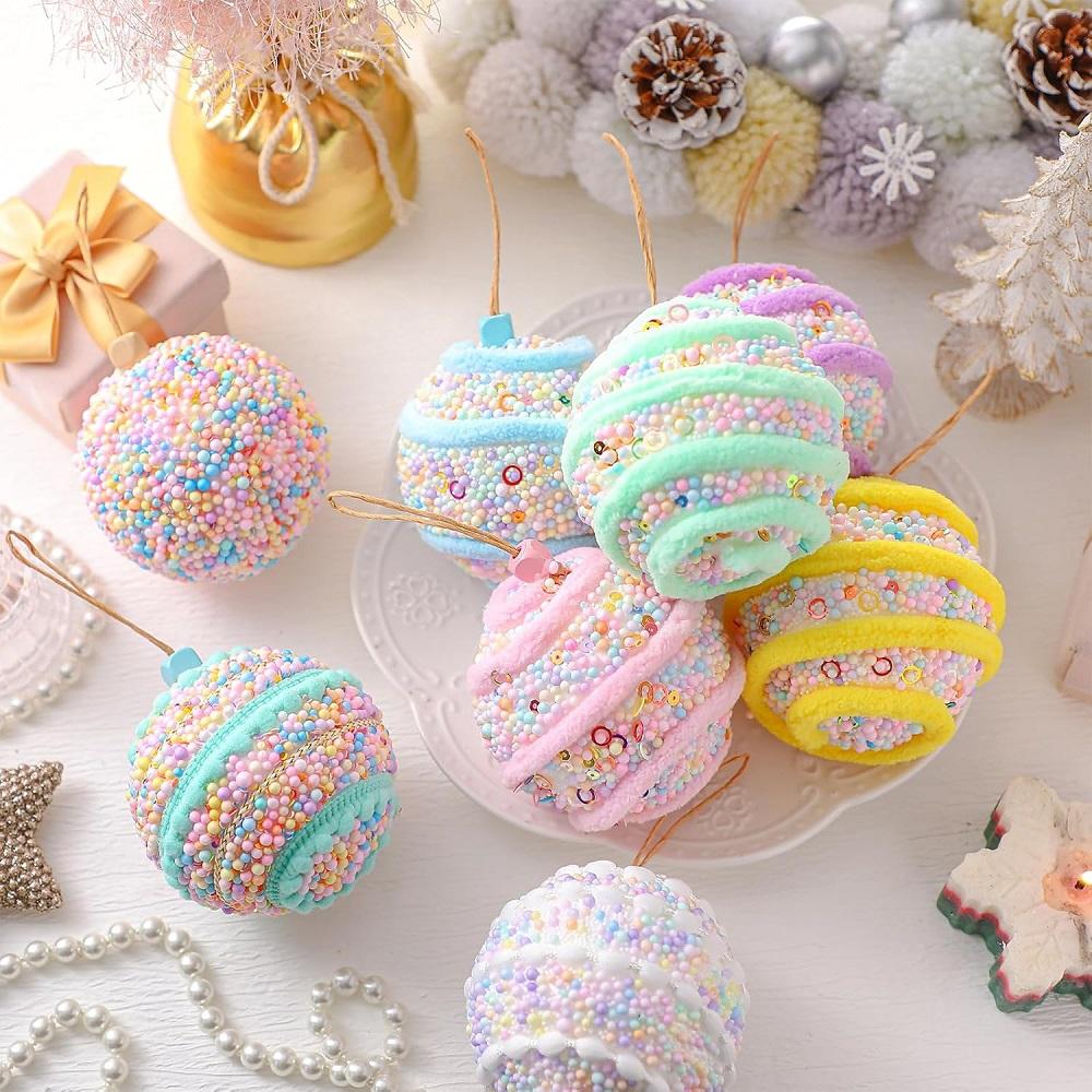 3 шт. Конфетные Рождественские украшения Пастельный набор шаров Украшение Макарон Небьющиеся Блестящие Пенопластовые шары Подвесной декор для рождественской елки