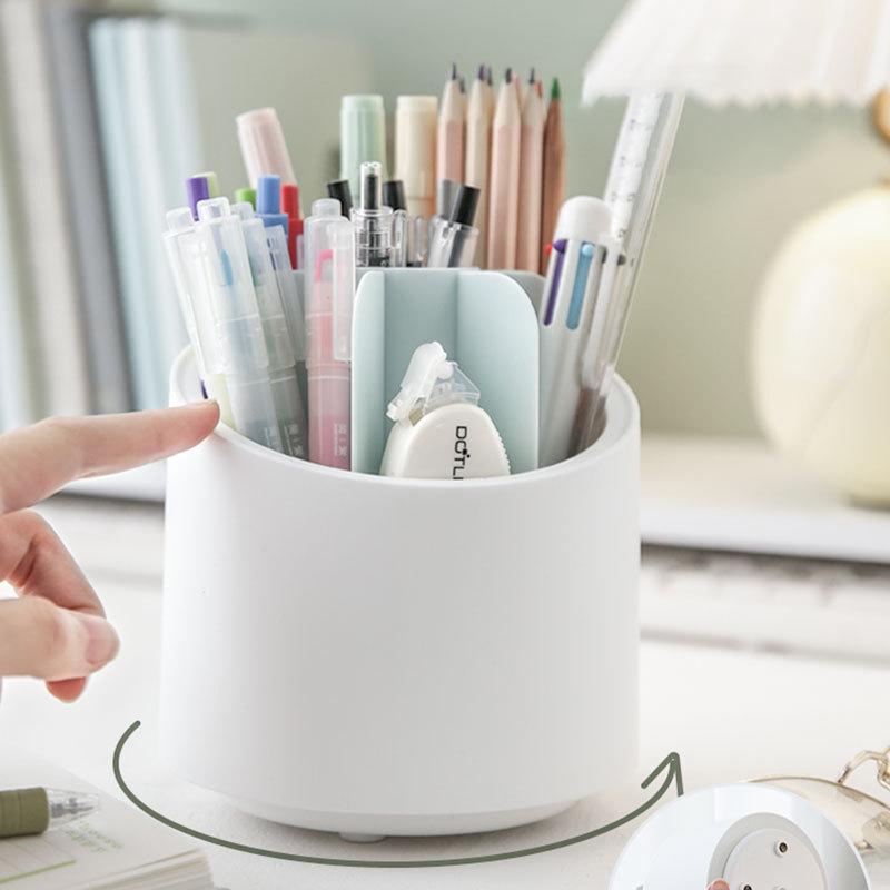 Вращающаяся подставка для ручек с крышкой, милая креативная круглая подставка для ручек для студентов, большая вместимость, настольный органайзер для канцелярских принадлежностей для офиса