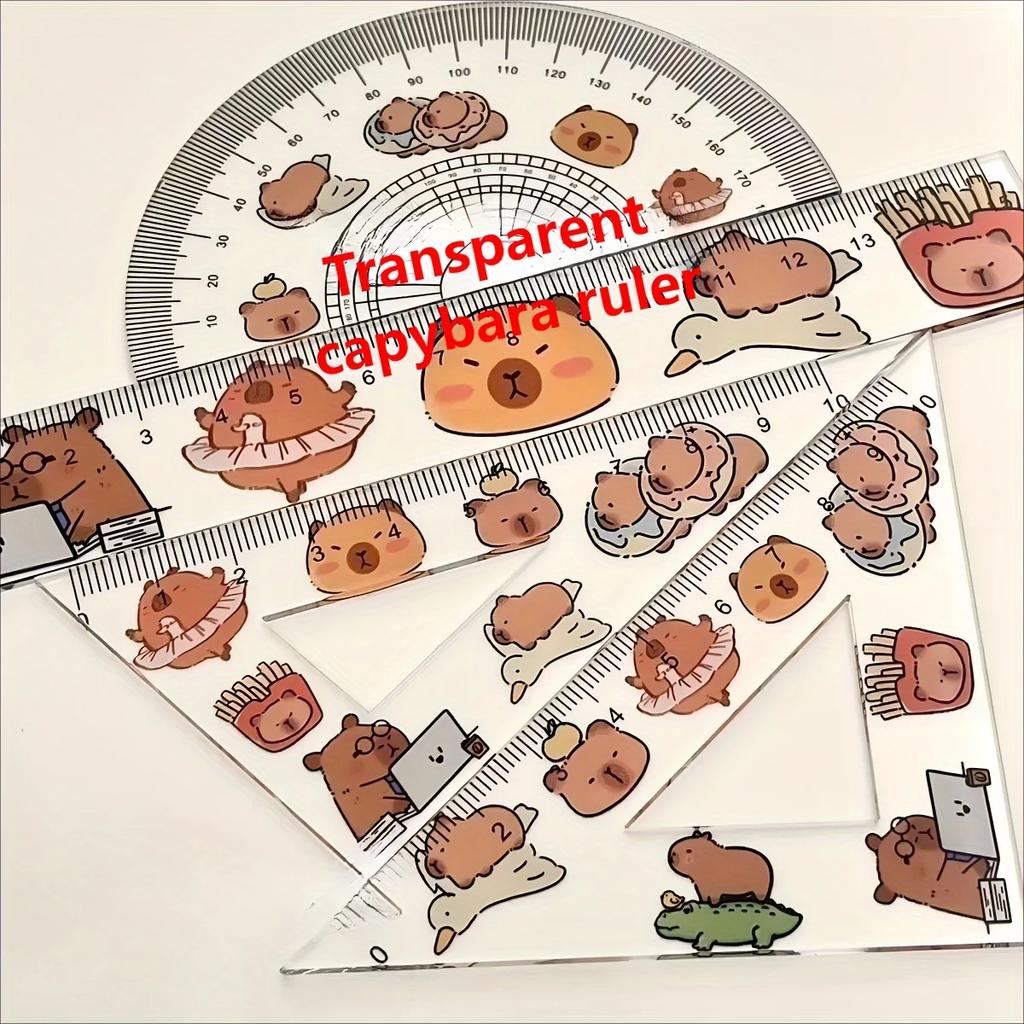 4 шт. Пластиковая прозрачная линейка Капибара, Набор линейки для тестового рисования, Четырехкомпонентная линейка, Пластиковая прозрачная линейка, Треугольная доска