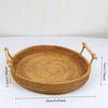 1pc Artisanal Woven Rattan Serving Tray,Dual Handles, Multipurpose Tea and Snack Presentation Platter, Ideal Bread Basket