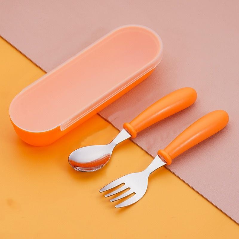 1 комплект детских ложек и вилок, коробка для детей, детские столовые приборы из нержавеющей стали, переносные принадлежности для кормления детей, детские ложки, набор детской посуды