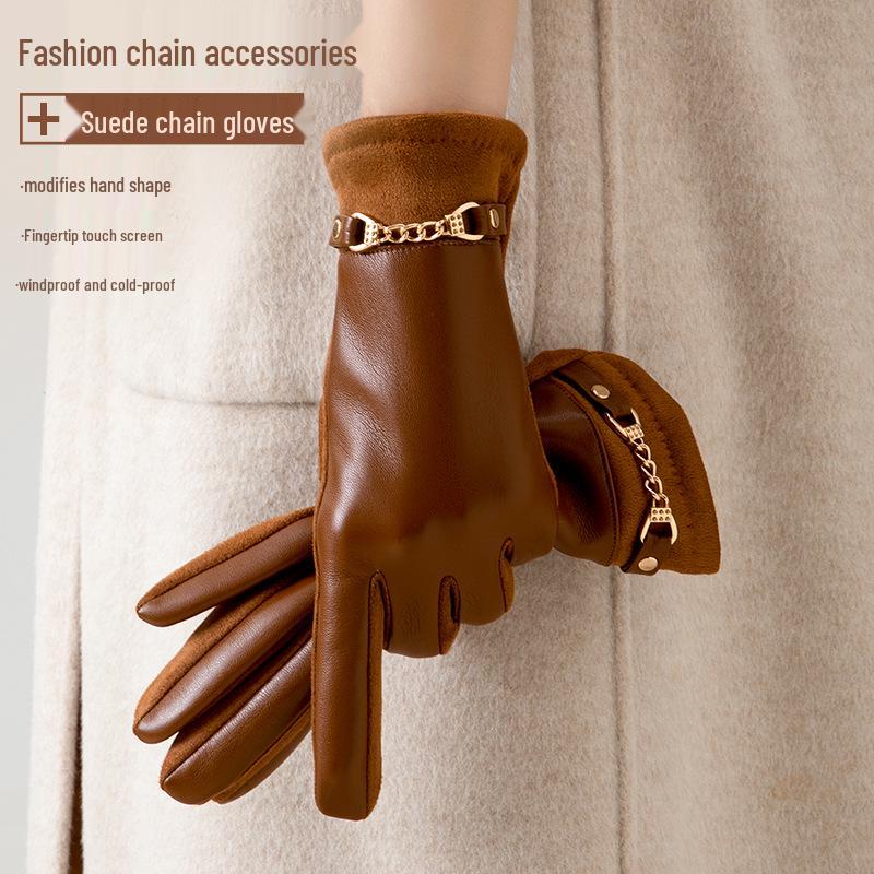 Женские зимние перчатки на флисовой подкладке: Теплые, Ветрозащитные, Совместимые с сенсорным экраном, Протеиновая кожа