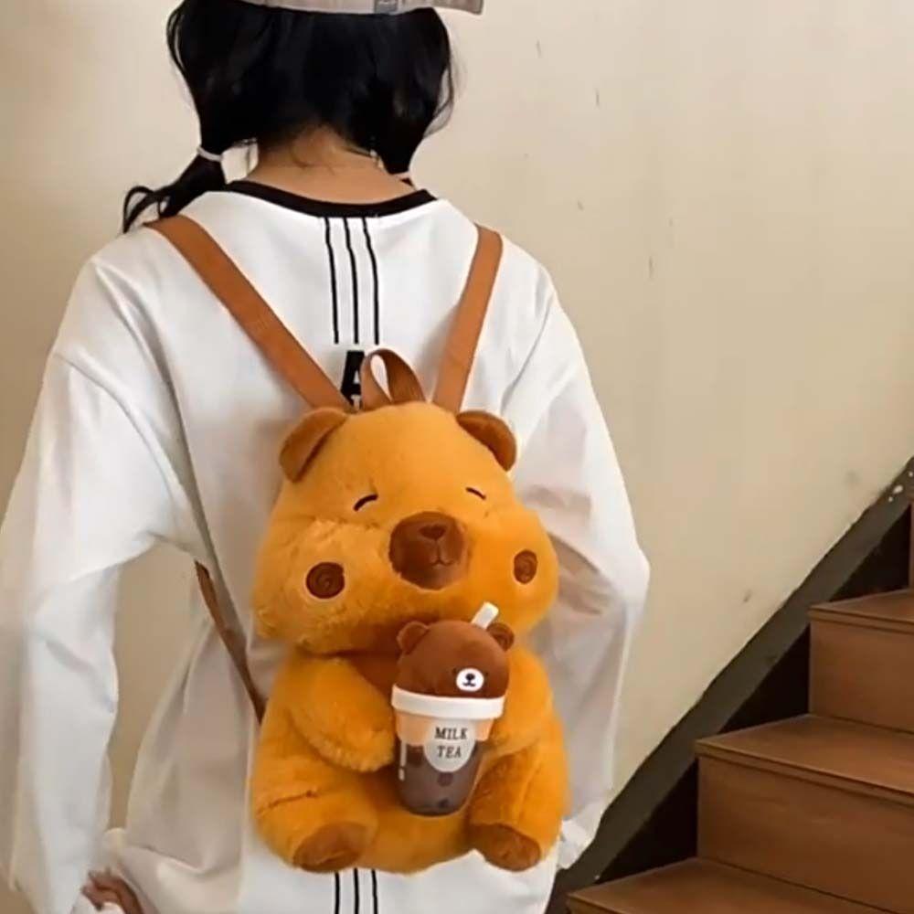 Bear Brown Doll Bag Cute Cartoon Daypack Thickened Capybara Plush Backpack Women