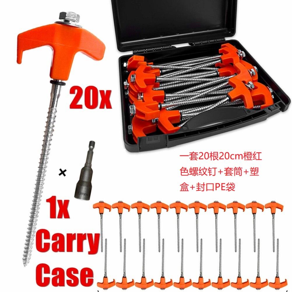 Набор из 20 штук 7-дюймовых колышков для кемпинга, колышков для палатки, включает шестигранную насадку и ящик для хранения, металлические колышки для палатки с резьбой для кемпинга на лугу