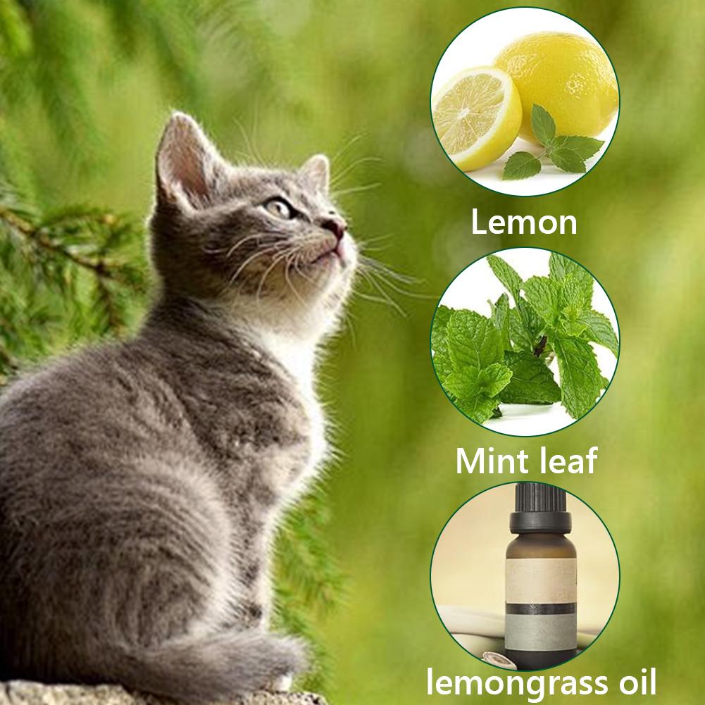 2.Натуральные ингредиенты:Наш отпугиватель для кошек содержит натуральные ингредиенты, такие как грейпфрут, сладкий апельсин, камфора, мята и лимон, что делает его безопасным для людей, домашних животных и растений.