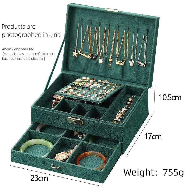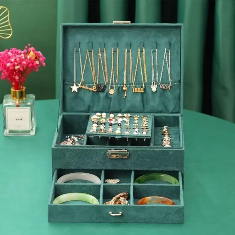 Men's and Women's Vintage Jewelry Boxes, Large Capacity Storage Boxes, Luxury Style Jewelry Spaces, Fine Soft, Dark Green Velvet