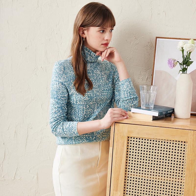 Kemeng Boca Women's Printed Fine Wool Mock-Neck Sweater