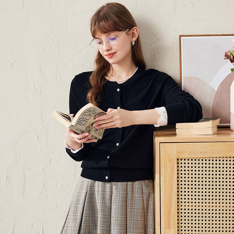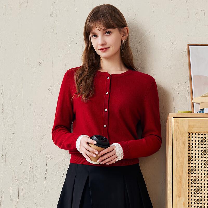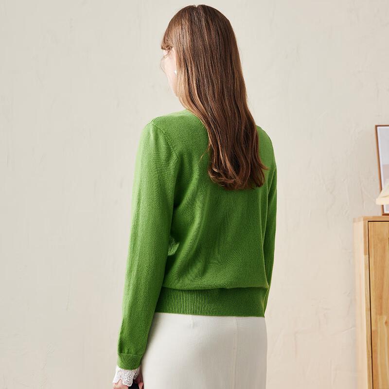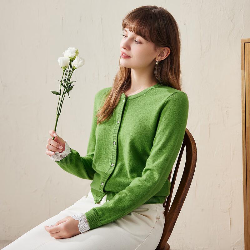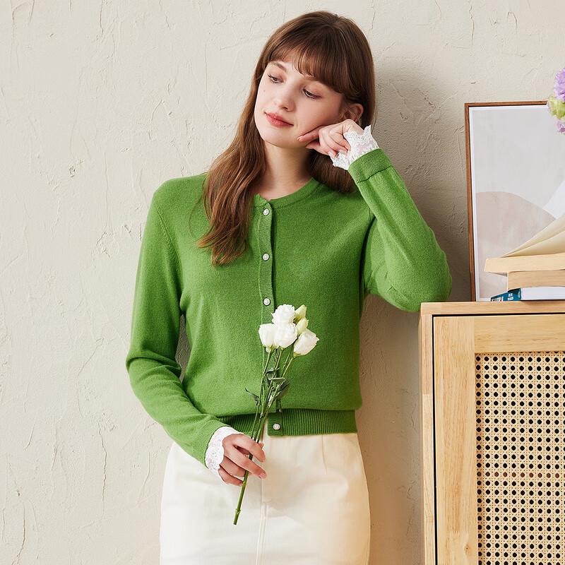 Женский кардиган из шерсти с кружевной отделкой пэчворк Komoboka