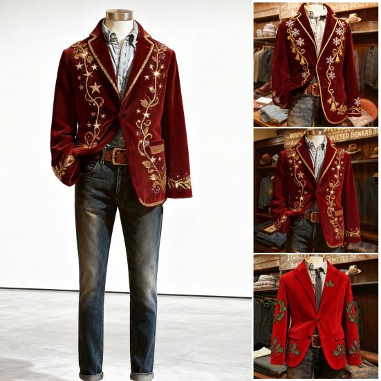 Мужское вельветовое пальто, однобортный пиджак, лацканы, длинный рукав, 3D-принт на рождественскую тематику, приталенный пиджак, формальная сценическая одежда