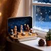 Мирная миниатюрная экспозиция: Святое Рождество в жестяной коробке красиво изображает традиционную историю в компактной форме, идеально подходящей для столешниц или каминных полок.. Его безмятежное присутствие передает суть Рождества, предлагая спокойный центральный элемент для праздничных собраний.