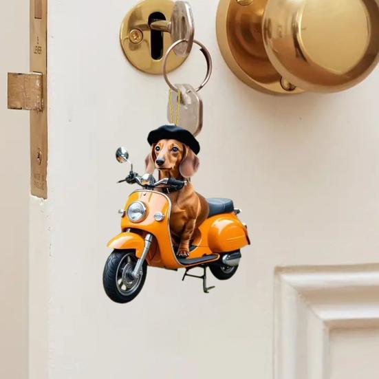 2D Подвеска для машины с собакой на велосипеде, акриловое украшение для зеркала заднего вида, милый тематический автомобильный аксессуар для декора интерьера